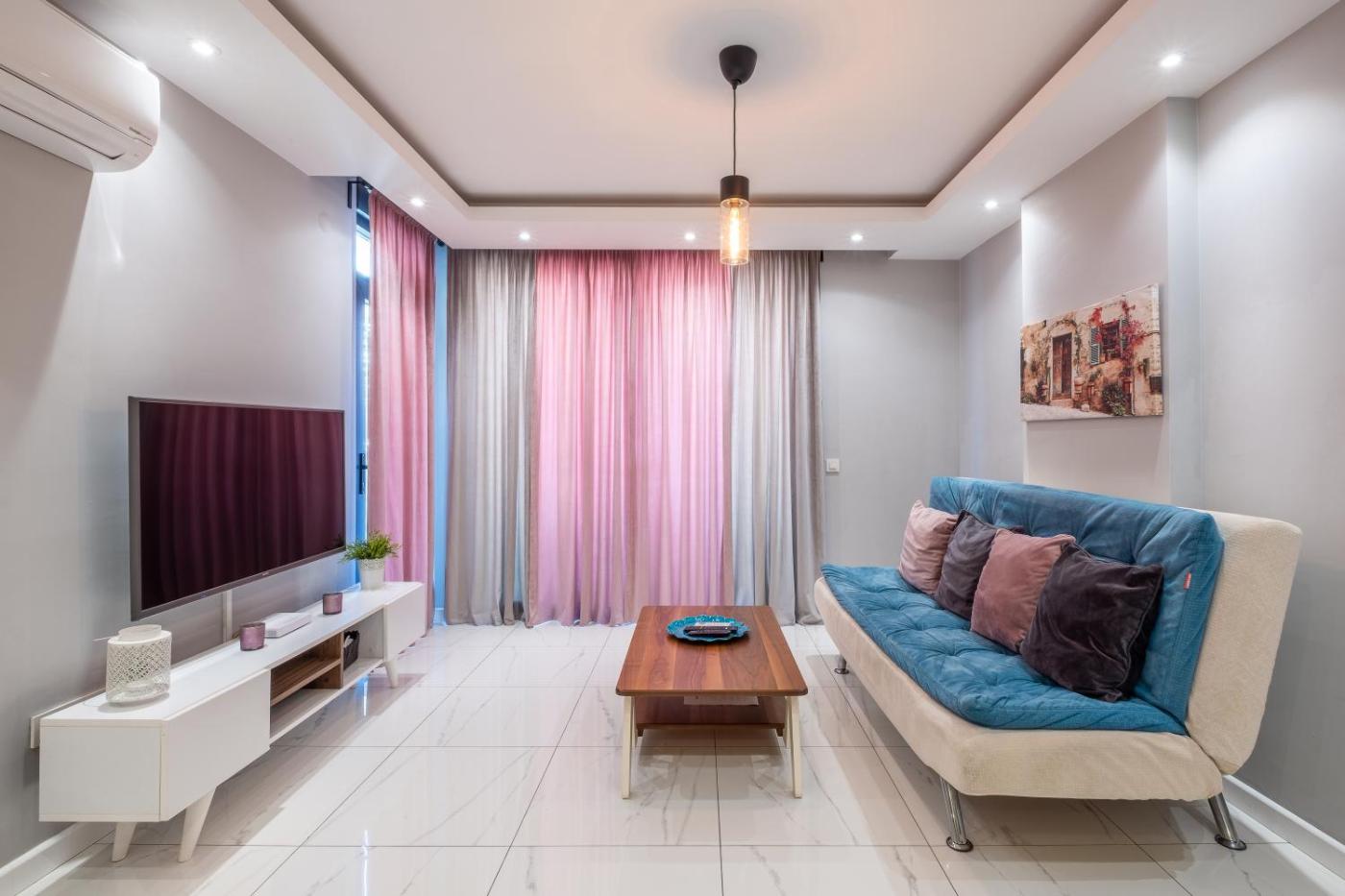 One-Bedroom Apartment. Guests will have a special experience as the apartment provides a private pool. Featuring a private entrance, this air-conditioned apartment consists of 1 living room, 1 separate bedroom and 1 bathroom with a shower. Meals can be prepared in the kitchen, which is equipped with a refrigerator, a dishwasher, kitchenware and an oven. The unit comes with tiled floors, a seating area, a washing machine, a dining area, as well as a balcony. The unit offers 2 beds.