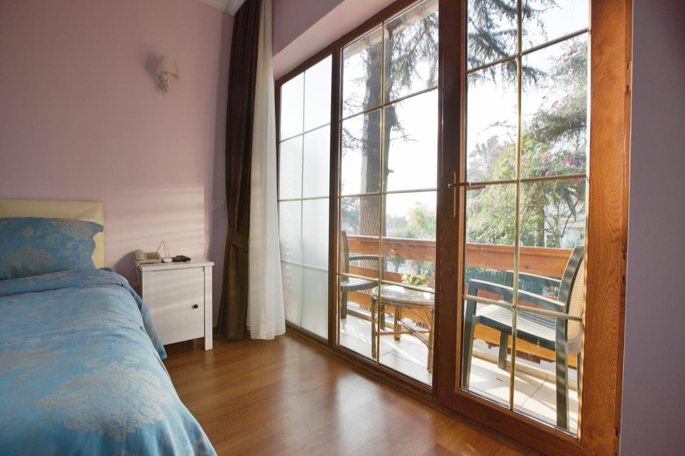 Double Room with Balcony. This air-conditioned double room is comprised of a flat-screen TV with cable channels, a private bathroom as well as a terrace with garden views. The unit has 1 bed. ;