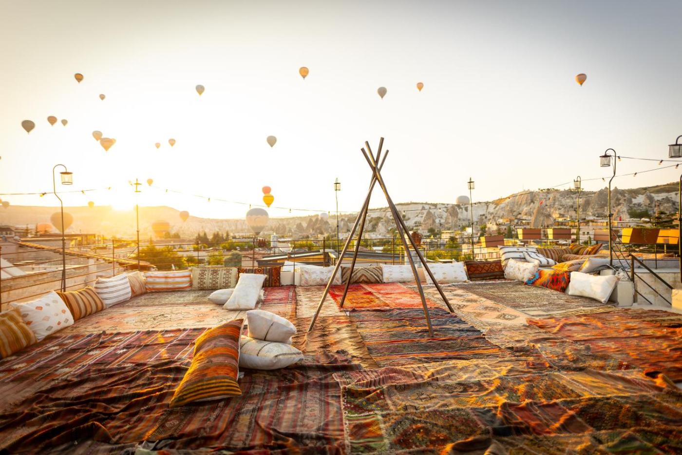 Deluxe Triple Room with Balcony with Balloons View. The spacious triple room provides air conditioning, a private entrance, a terrace with garden views as well as a private bathroom featuring a shower. The unit offers 2 beds. ;