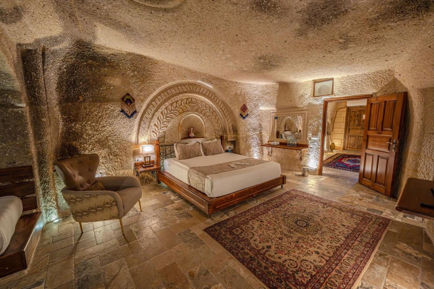 Superior Family Cave Room 102. Offering free toiletries, this family room includes a private bathroom with a shower, a bidet and a hairdryer. The air-conditioned family room offers a flat-screen TV with satellite channels, soundproof walls, a minibar, a seating area as well as garden views. The unit offers 3 beds. ;