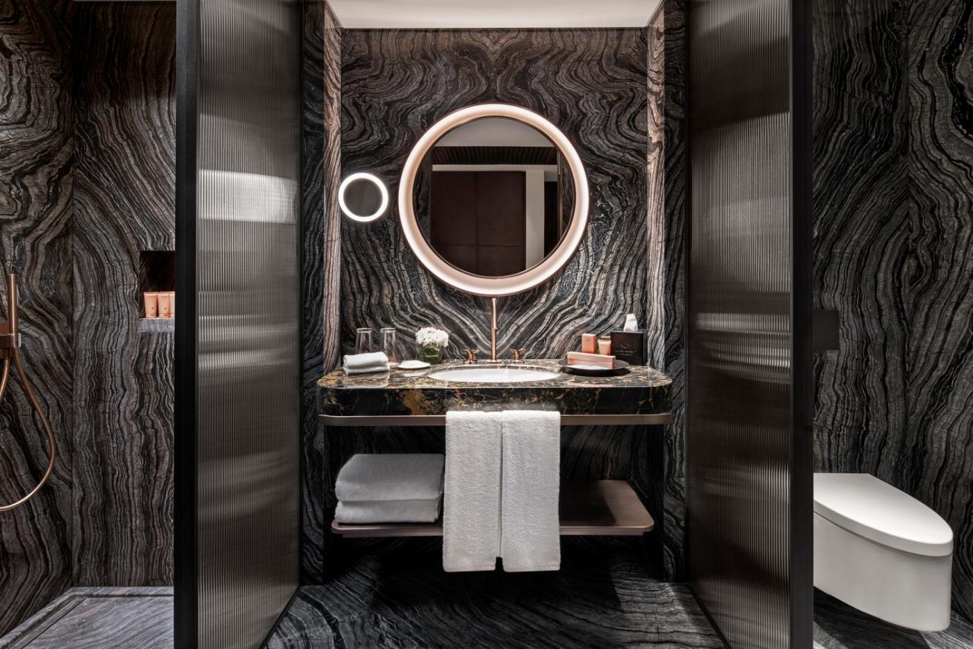 Corner Double Room. Featuring free toiletries and bathrobes, this double room includes a private bathroom with a walk-in shower, a bidet and a hairdryer. The spacious air-conditioned double room features a flat-screen TV with streaming services, soundproof walls, a minibar, a tea and coffee maker as well as city views. The unit has 1 bed. ;