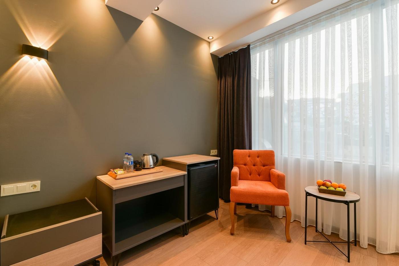 Deluxe Double Room. Providing free toiletries, this double room includes a private bathroom with a shower, a hairdryer and slippers. The air-conditioned double room provides a flat-screen TV with satellite channels, a minibar, a wardrobe, a safe deposit box as well as city views. ;