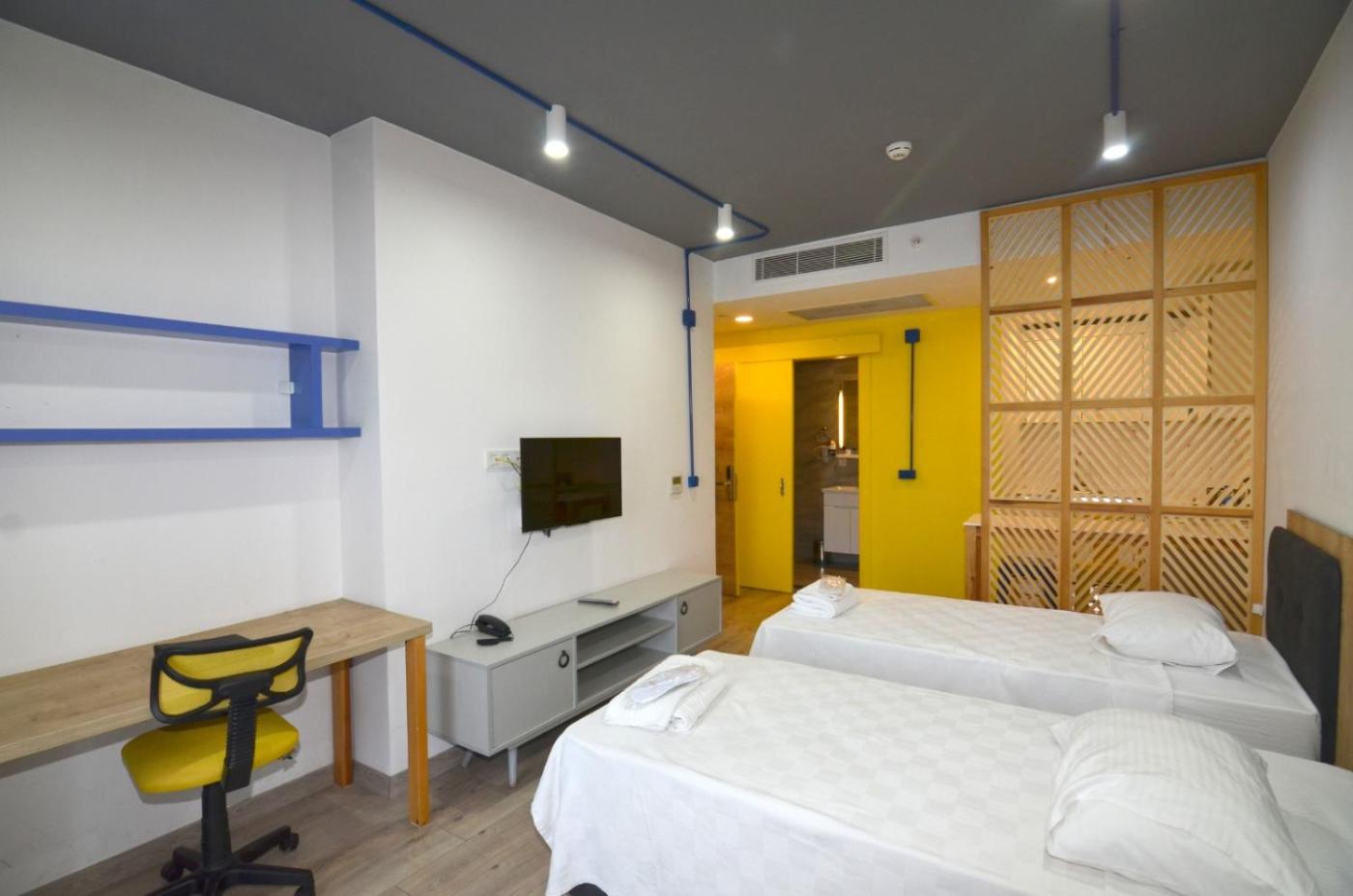 Loft. This apartment is comprised of 1 living room, 1 separate bedroom and 1 bathroom with a shower and free toiletries. In the kitchenette, guests will find a stovetop, a refrigerator, kitchenware and an electric kettle. The air-conditioned apartment offers a TV with satellite channels, a washing machine, a seating area, a dining area as well as city views. The unit offers 1 bed. ;