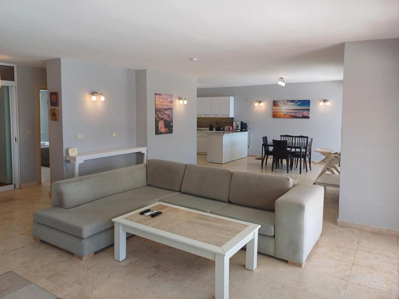 The spacious villa with a terrace and sea views features 5 bedrooms, a living room, a flat-screen TV, an equipped kitchen with a dishwasher and an oven, and 3 bathrooms with a hot tub. Towels and bed linen are provided in the villa. For added privacy, the accommodation has a private entrance and soundproofing.