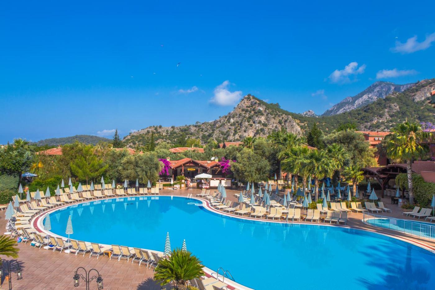 This 4-star hotel is located a 5-minute stroll from the famous Ölüdeniz beach on the luscious green coastline of Muğla Province. Fountains and palm trees are dotted around the outdoor pool area, while indoors there are Turkish Baths and a fitness centre.